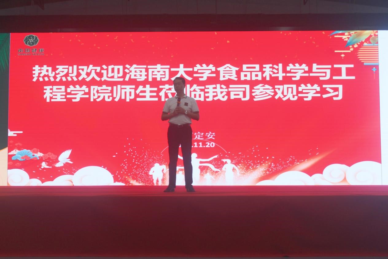 首先南国健康产业园副总经理陈伟斌及南国健康产业公司工作人员对BB贝博艾弗森原官方网站全体师生的到访表示热烈欢迎。陈伟斌副总经理向同学们介绍了南国企业的文化、品牌发展和产品种类,让同学们对南国食品有了初步的认识。