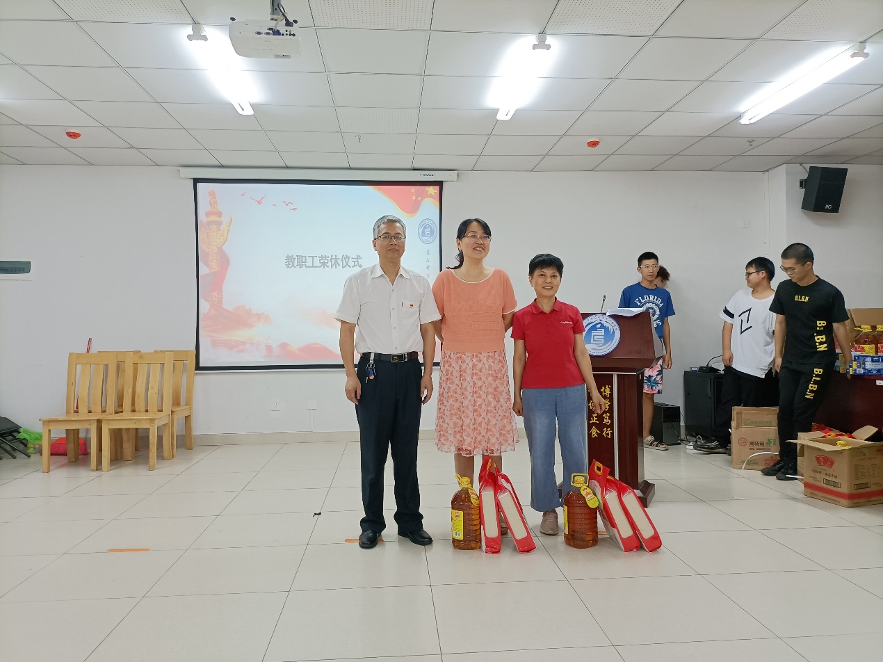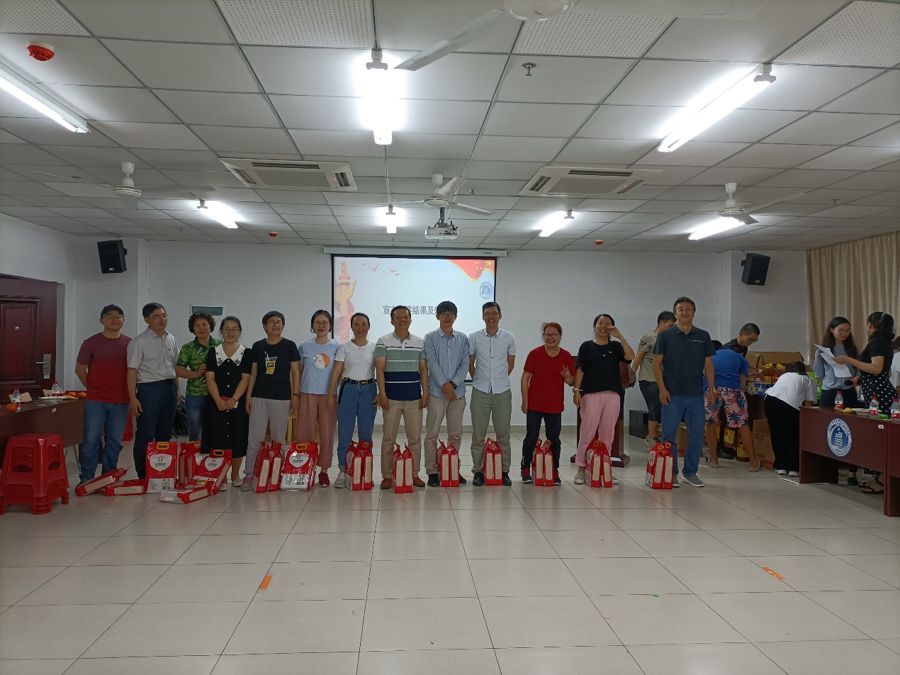 活动在全体教职工合唱“没有共产党就没有新中国”歌曲中拉开帷幕,党史知识问答和团队趣味活动交叉进行。党史知识问答活动中,教职工们积极思考,主动举手抢答,气氛热烈紧张而又愉快放松,“一大会址、中国共产党的最高理想和最终奋斗目标……”等党史知识更加深入人心;趣味活动中,教职工团结协作,斗志昂扬,奋力拼搏,展现了各自的风采,活动现场变成了欢乐的海洋,大家纷纷表示这些活动放松了身心,愉悦了心情,又提升了团队的合作能力。在活动中学院还举行了教职工荣休仪式。仪式上,康丽如、蔡锦红两位老师回顾了自己在学院工作的点点滴滴,表达了对工作的深深眷恋和对学院发展的祝福,现场的同事也纷纷送上了对两位老师的美好祝愿,邓秀成书记代表学院为他们送上了慰问品;在发奖环节,各个参加活动的教职工和团队都欣喜地收到了学院工会为大家准备的奖品,活动也在欢乐的气氛中落下了帷幕。