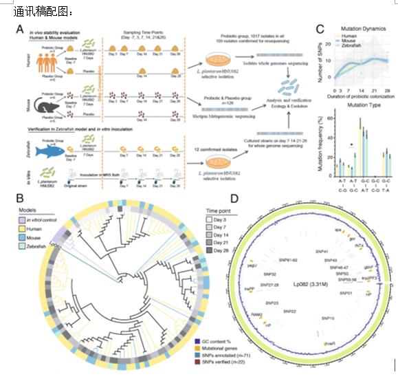 2021年7月1日,BB贝博艾弗森原官方网站与加州大学Rob Knight 实验室和哈佛医学院Yang-Yu Liu实验室最新合作研究成果,在微生物领域顶级期刊《Microbiome》(中科院1区TOP期刊, 影响因子 14.65)发表 “Candidate probiotic Lactiplantibacillus plantarum HNU082 rapidly and convergently evolves within human, mice, and zebrafish gut but differentially influences the resident microbiome”,揭示了益生菌在不同宿主肠道选择压力下遗传稳定性及适应性进化规律。