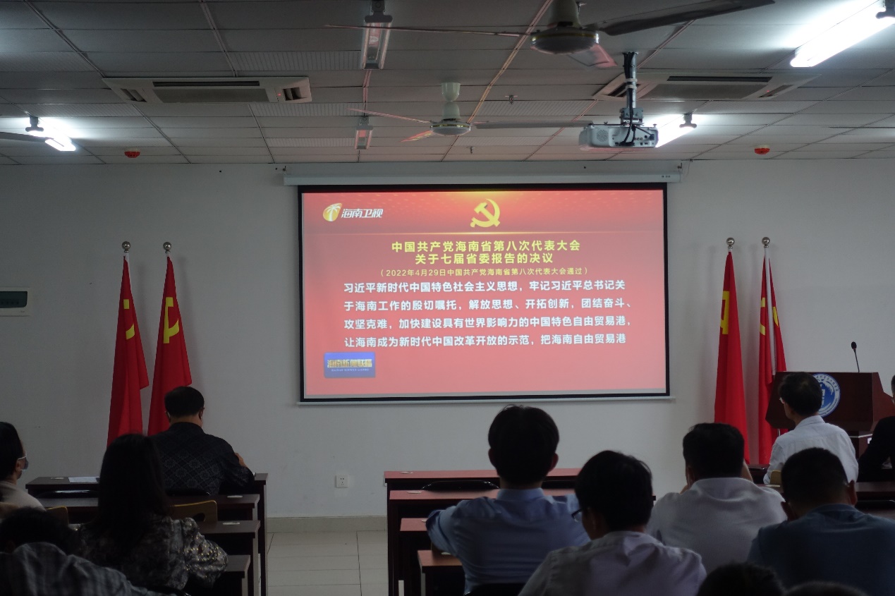 会议通过观看《中国共产党海南省第八次代表大会关于七届省委报告的决议》新闻报道,专题学习省第八次党代会精神。指出,省第八次党代会是在全省上下深入学习贯彻习近平总书记考察海南重要讲话精神、全岛封关运作准备工作加快推进的关键时期召开的一次十分重要的会议,学习好此次会议精神,对于全体教职工今后学习、工作、生活至关重要。会议号召,全体教职工以实际行动落实好省第八次党代会精神,积极投身学校完全学分制、书院制和协同创新中心三大改革,为学校发展贡献力量。会议要求,要将党代会精神学习与学院发展相结合,与教职工教学科研管理工作实际相结合,求真务实、改革创新。