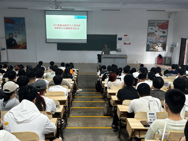 针对2021级学生考研和就业需求,为有效指导学生做好考研、考公及实习规划,帮助学生理清思路,提早应对择业就业问题,以更加奋进的姿态创造未来,学院于2024年5月14日下午在1教T101室召开2025届本科就业实习动员会,特邀2020级李激阳、秦艺蒙、张梦洋、朱效鹏、常昊同学分享了考研经验和心路历程。学院党委书记邓秀成、食质系副主任陈健介绍了学生关注的考研考公和就业工作经验,2021级班主任和全体学生参加会议,会议由食质系主任云永欢主持.