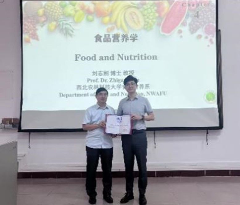 2024年10月24至25日,贝博官网邀请西北农林科技大学BB贝博艾弗森原官方网站刘志刚教授来校讲授冬季小学期课程。本次授课对象为2022级食品科学与工程及食品质量与安全专业的本科生,授课内容为《食品营养学》,授课专题分别为脂质代谢与调节、脂质营养与健康。陈文学副院长对刘志刚教授的到来表示热烈欢迎,并为其颁发聘书。