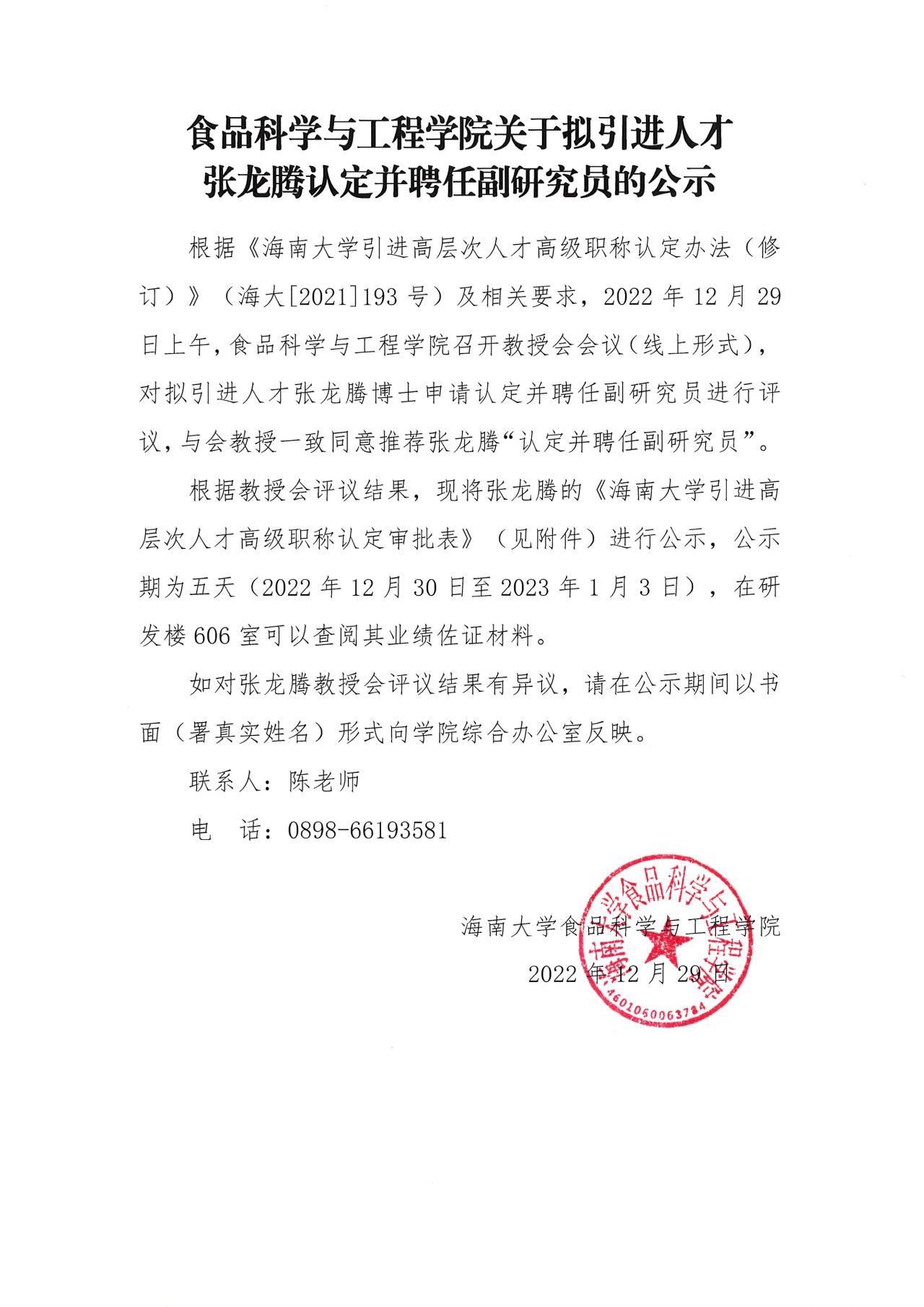BB贝博艾弗森原官方网站关于拟引进人才张龙腾认定并聘副研究员公示