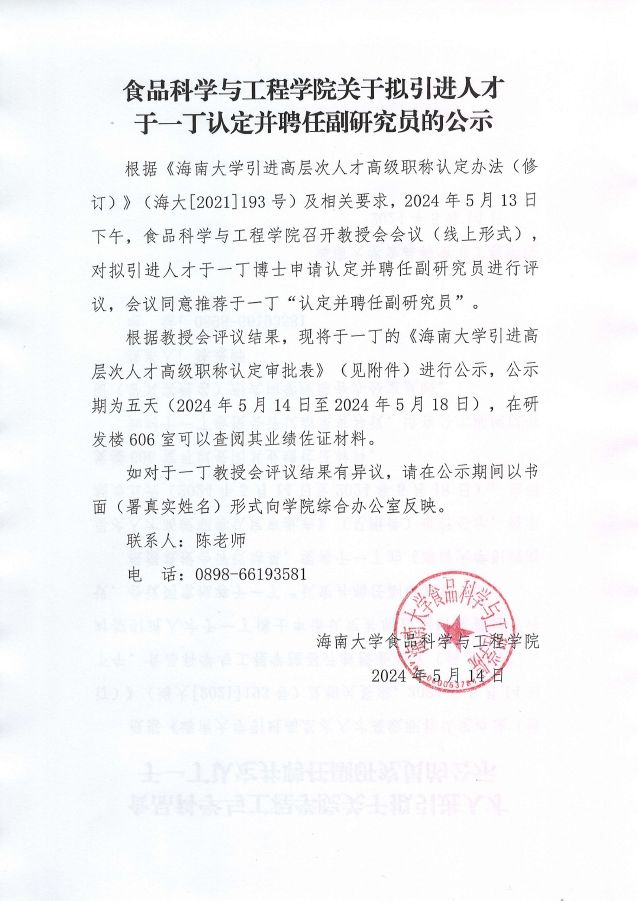 BB贝博艾弗森原官方网站关于拟引进人才于一丁认定并聘任副研究员的公示