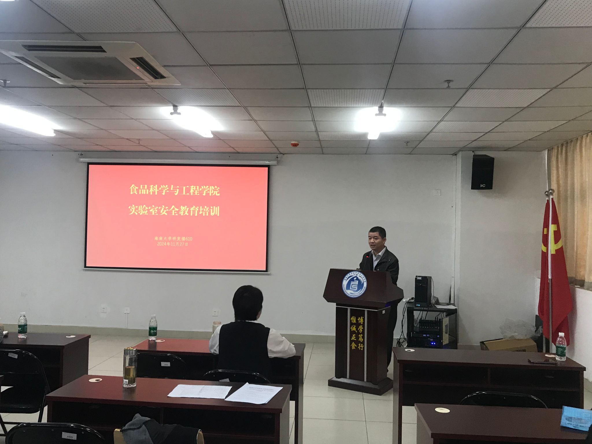 为了落实海大办《BB贝博艾弗森原官方网站实验室安全管理工作规程》以及海大党政办〔2024〕17号文件的相关规定和检查要求,食品科学与工程学院根据校实设处“关于组织开展实验室安全教育培训活动的通知”(海大实〔2024)50号)要求,11月27日上午举办了实验室安全教育培训活动,邢红斌书记和于志鹏副院长组织全院教职工观看警示教育片,校实设处杨海峰副处长和陈秀莲科长亲临现场指导,学院实验中心向东主任对存在的实验室风险和问题进行了汇报。本次培训活动进一步厘清了学院实验室安全管理存在的短板,要求各实验室加强和落实实验室安全管理责任,增强了全院教职工师生安全意识。